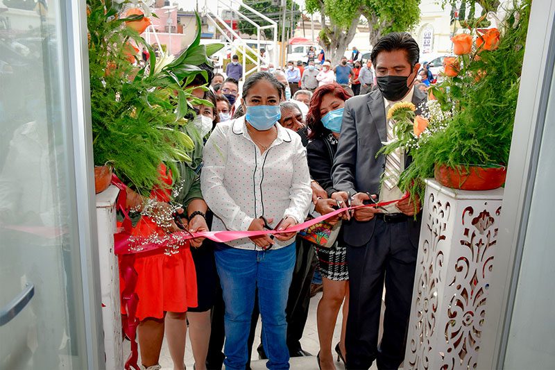 La alcaldesa junto con sus regidores y el presidente auxiliar se dieron cita frente al inmueble, para realizar el corte de listón inaugural del rehabilitado inmueble.