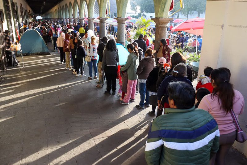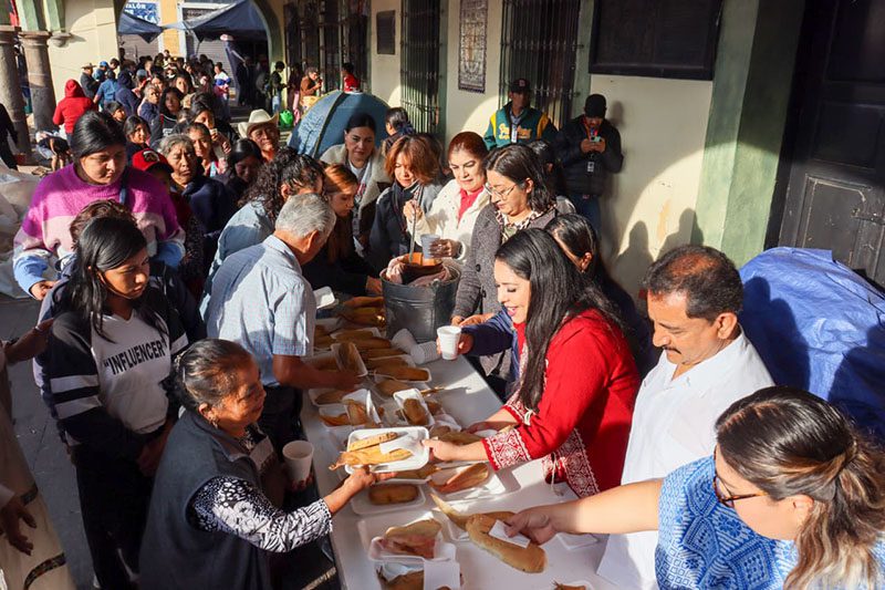 Desde muy temprano, la presidenta municipal Tonantzin Fernández, acompañada de regidores, secretarios y directores, recibió a peregrinos y comerciantes en la Presidencia Municipal con tamales, atole, café y pan, marcando así el inicio del segundo día de esta celebración ancestral.