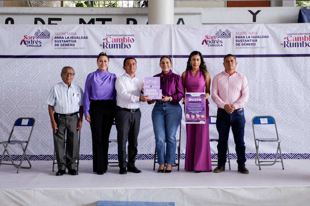 Así también se instaló el «Buzón Violeta» herramientas de comunicación para atender reportes de hostigamiento y acoso canalizados a la Secretaría para la Igualdad Sustantiva de Género del Ayuntamiento de San Andrés Cholula.
