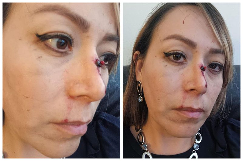 Monroy Castillo relató que el 9 de febrero de 2024 fue brutalmente agredida por su esposo, lo que le causó graves lesiones, entre ellas una fractura en la nariz y daños en un ojo. Asegura que la agresión ocurrió en flagrancia y que su agresor fue detenido en ese momento, pero liberado a las tres horas. Desde entonces, ha sido víctima de constantes amenazas e intimidaciones, incluyendo el seguimiento de personas desconocidas y la vigilancia de su domicilio.