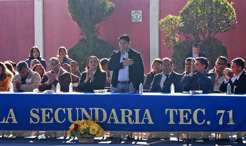 “No podemos pensar en el futuro si no invertimos en educación y sin ella no podemos crear las bases de una mejor sociedad”, sostuvo Omar Muñoz, presidente municipal de Cuautlancingo, en la Escuela Secundaria Técnica 71, ubicada en San Lorenzo Almecatla.