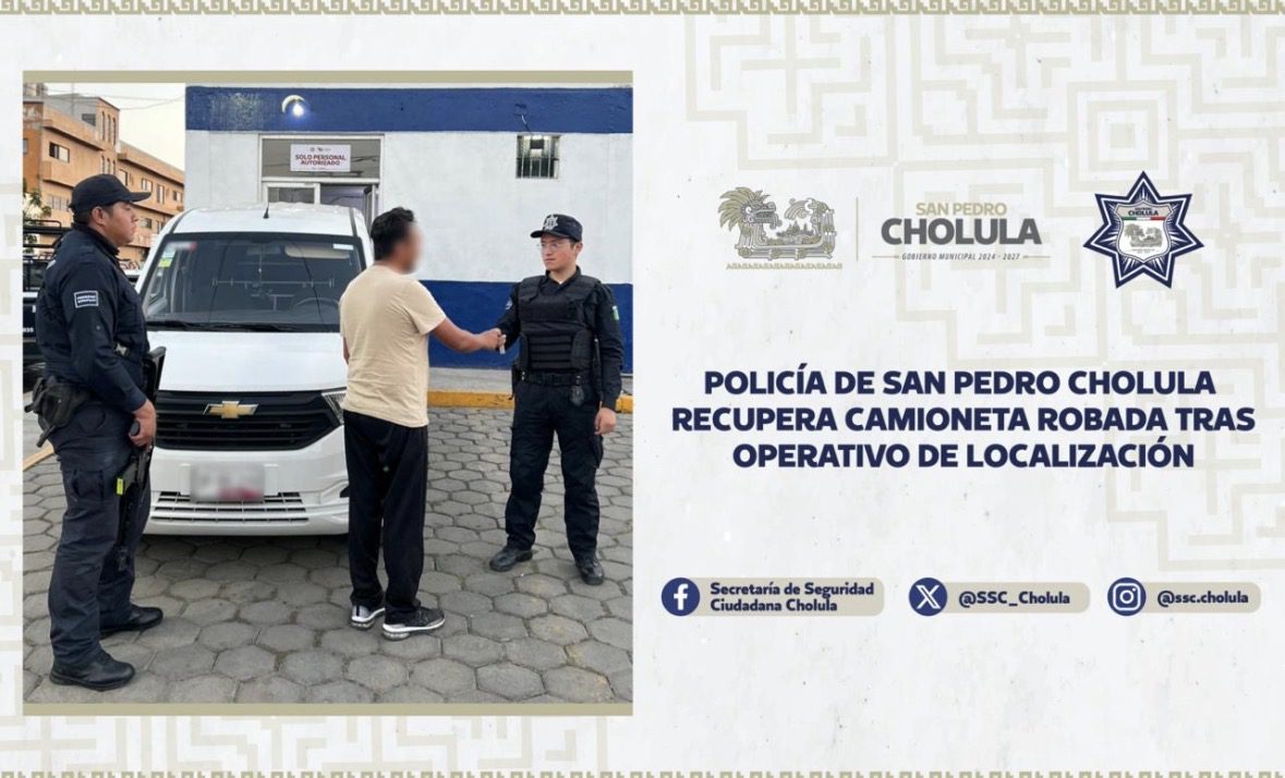 Como resultado de una oportuna intervención, elementos de la Secretaría de Seguridad Ciudadana de San Pedro Cholula (SSC Cholula) lograron recuperar una camioneta marca Chevrolet N400 Tornado, color blanco, modelo 2024, que contaba con reporte de robo.