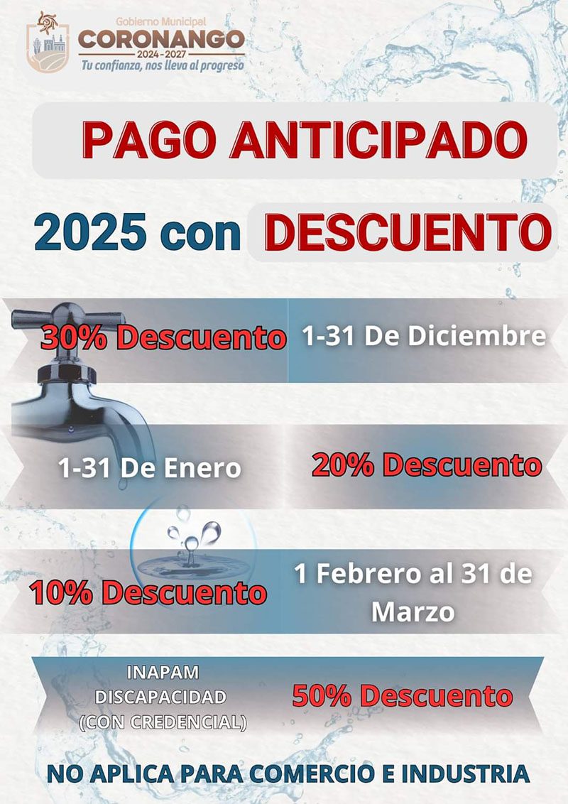 El Ayuntamiento de Coronango, encabezado por Armando Aguirre Amaro, dio a conocer la promoción del pago anticipado del impuesto predial 2025, la cual incluye descuentos para los contribuyentes.