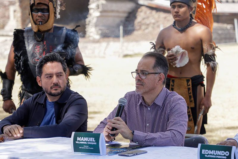 A la rueda de prensa asistieron Manuel Villarruel, director del Centro INAH-Puebla; Juan Ramón Espinosa, titular de la Secretaría de Turismo, Cultura y Desarrollo Económico; y Martín Cruz, administrador de la Zona Arqueológica de Cholula.