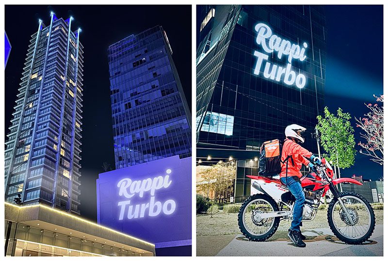 La ciudad de Puebla se convierte en el escenario de la innovadora «Rappi Señal», donde los edificios locales son tapizados con proyecciones para anunciar a los usuarios que ahora tienen la opción de realizar pedidos que llegarán en menos de 10 minutos. Este enfoque visual único busca destacar la presencia de Rappi Turbo en la ciudad y resaltar la velocidad sin precedentes que ofrece.