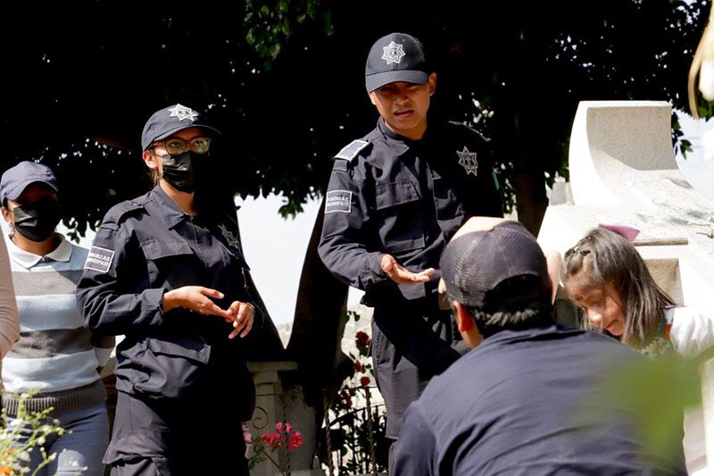 Elementos de las Direcciones de Seguridad Pública, Vialidad, Protección Civil , Prevención del Delito, además de la Coordinación del Centro de Emergencias (CCE), llevaron a cabo diferentes trabajos con el objetivo de propiciar un ambiente de paz para las familias que visitaron los cementerios.