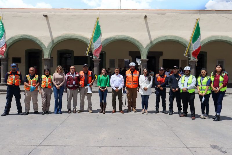 En punto de las 12:00 horas, los teléfonos móviles y las alarmas de las oficinas del Ayuntamiento comenzaron a sonar. De inmediato, el personal evacuó la Presidencia Municipal en un tiempo de 60 segundos, mientras el equipo de Protección Civil activaba los protocolos de seguridad correspondientes.