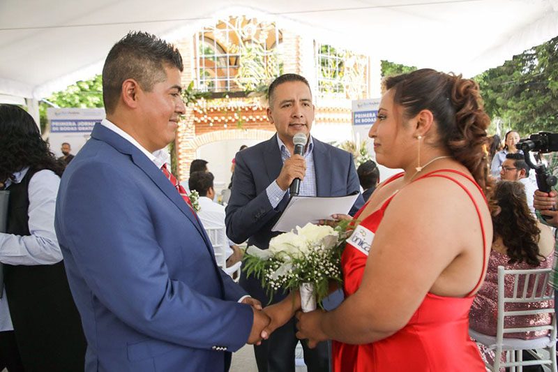 Con el objetivo de otorgar certeza jurídica y protección a 30 parejas del municipio, el edil Mundo Tlatehui, encabezó la Primera Jornada de Bodas Gratuitas en el Zócalo de la Cabecera Municipal.