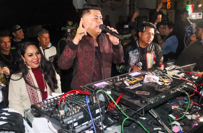 Como antesala a la noche del Grito, la Plaza de la Concordia vibró al ritmo de la música sonidera con la presentación de Jaime Guzmán y su “Sonido Famoso”, quienes hicieron bailar a miles de personas con los grandes éxitos de la cumbia, además de compartir saludos dedicados a familias y agrupaciones de Cholula y sus alrededores.