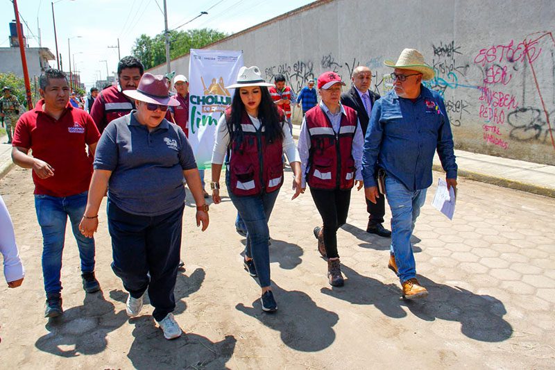 Bajo la premisa de conservar un municipio limpio, ordenado y seguro, la presidenta municipal de San Pedro Cholula, Tonantzin Fernández, encabezó una faena comunitaria en el barrio de Santiago Mixquitla, zona donde en temporada de lluvias se registran inundaciones.