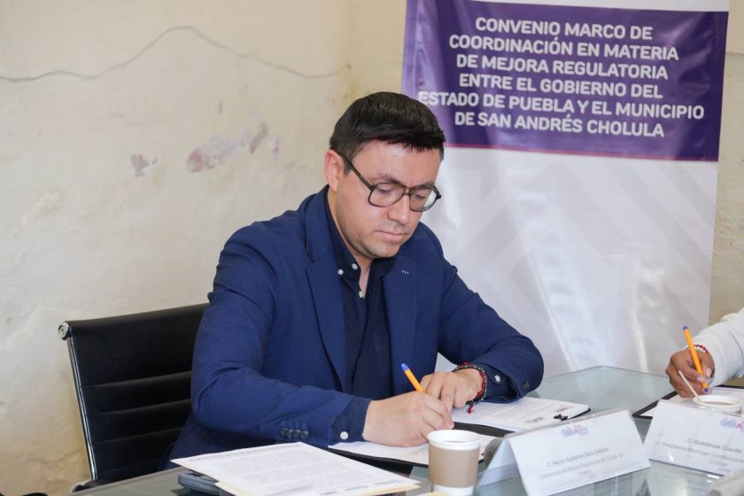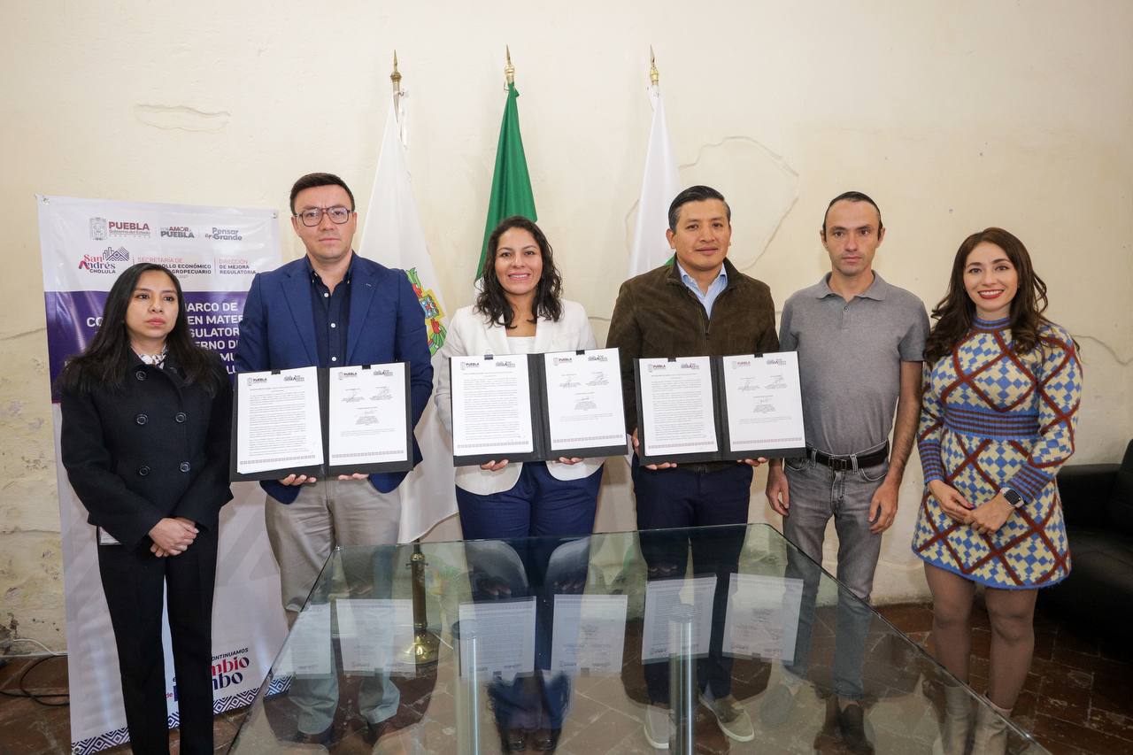 Con el propósito de establecer las bases de colaboración entre el gobierno del municipio y del estado en materia de mejora regulatoria, orientada a simplificar, transparentar y modernizar los servicios, trámites y normas que ofrece el Ayuntamiento de San Andrés Cholula , la presidenta Lupita Cuautle Torres firmó un convenio de colaboración con la Comisión Estatal de Mejora Regulatoria.