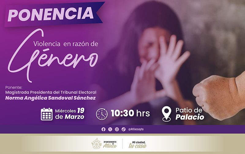 El Ayuntamiento de Atlixco, que encabeza Ariadna Ayala, te invita este 19 de marzo a las 10:30 de la mañana a la ponencia “Violencia en razón de género”.