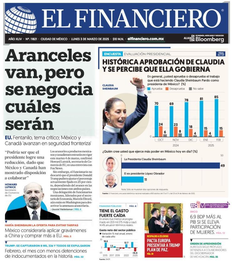 La presidenta Claudia Sheinbaum registró 85 por ciento de aprobación ciudadana en febrero, de acuerdo con la más reciente encuesta nacional de El Financiero.