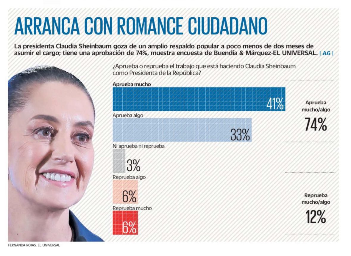 La encuesta nacional en vivienda de Buendía & Márquez, en exclusiva para El Universal, revela un panorama de optimismo generalizado, pero también subraya las prioridades y desafíos más apremiantes de su gestión y las primeras impresiones sobre su estilo de liderazgo.