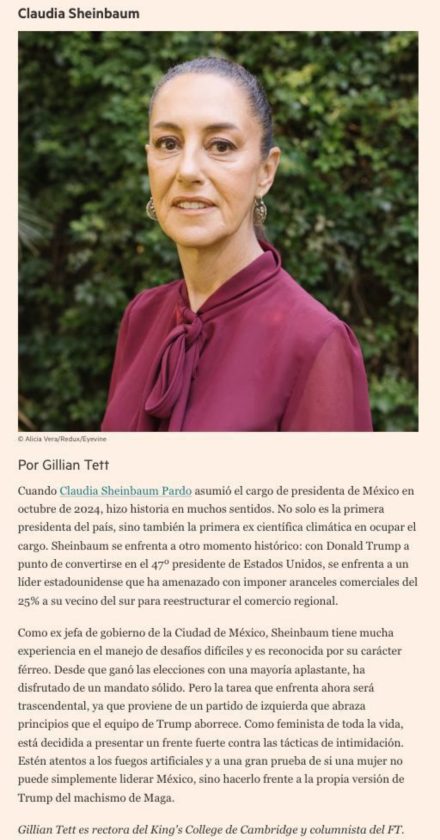 Desde que ganó las elecciones con una mayoría aplastante, ha disfrutado de un mandato sólido. Pero la tarea que enfrenta ahora será trascendental, ya que proviene de un partido de izquierda que abraza principios que el equipo de Trump aborrece. Como feminista de toda la vida, está decidida a presentar un frente fuerte contra las tácticas de intimidación. Prepárense para fuegos artificiales, y una gran prueba de si una mujer no sólo puede liderar México, sino hacerlo frente a la propia versión de Trump del machismo Maga.