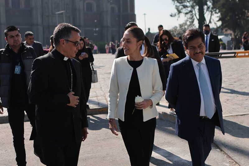 La mañana de este viernes, Claudia Sheinbaum hizo entrega de la rosa de plata bendecida por el Papa Francisco desde el Vaticano, al rector de la Basílica de Guadalupe, el padre Efraín Hernández Díaz.