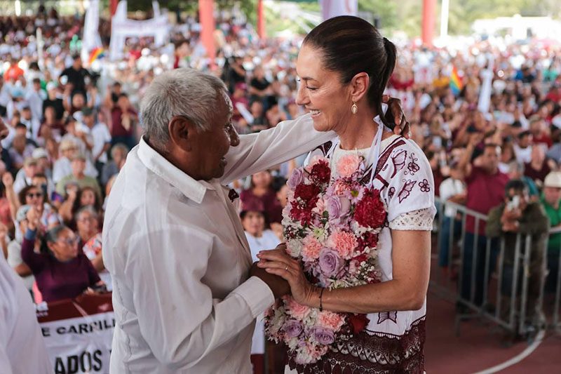 “Confiamos en ti, Claudia, mujer de retos e incansable, tu noble labor nos inspira todos los días a luchar por nuestros sueños, a no claudicar, porque tú eres una gran mujer. Serás nuestra próxima presidenta de México, una gran mujer, una gran académica y una gran científica que, con sus acciones honorables, trato humano y gran corazón, estará dirigiendo el segundo piso de la transformación de nuestra amada patria”, expresó.