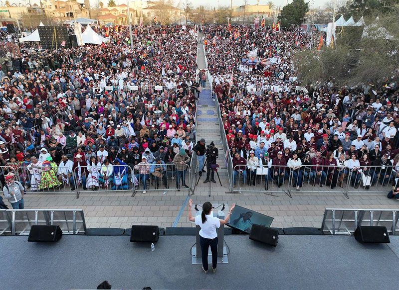 Desde el monumento a Benito Juárez en el que se reunieron mexicanos de todo lo largo y ancho de Chihuahua, Claudia Sheinbaum se comprometió a trabajar por la Transformación de esta entidad fronteriza, comenzando por el apoyo a las mujeres de la maquila, con la creación de 58 Centros de Educación Inicial para el cuidado y desarrollo de la primera infancia.