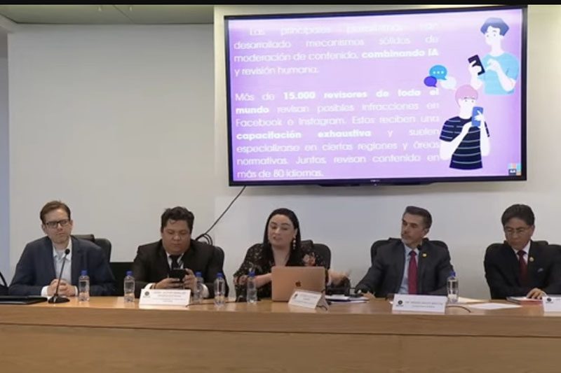 Expuso que las plataformas digitales se rigen por normas comunitarias estructuradas a través de la sociedad civil, expertos en derechos humanos, reguladores, reportes de usuarios y evaluación de prevalencia.