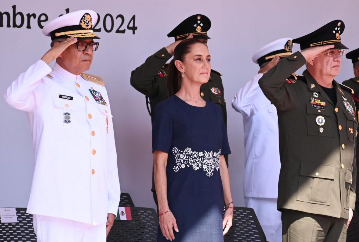 “Nuestra visión es el humanismo mexicano y nos mueve la honestidad, la paz, la justicia, la democracia y el amor del pueblo. Las Fuerzas Armadas nos protegen y llevan en el corazón los principios de lealtad, honestidad, honor, valentía y patriotismo; además, en esta nueva etapa de nuestra historia ponen sus conocimientos, creatividad y profesionalismo para apoyar, no solo en la defensa de nuestra patria y el apoyo a las mexicanas y mexicanos, sino también en el desarrollo del país con la construcción de trenes, carreteras, hospitales y puertos”, agregó.