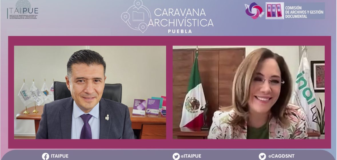 En la Caravana Archivística de Puebla también participaron Guadalupe Pérez Vargas, Directora del Archivo General del Estado de Puebla; Roberto Agundis Yerena, Secretario de la Comisión de Archivos y Gestión Documental del SNT, y Javier García Blanco, Comisionado del ItaiPue.