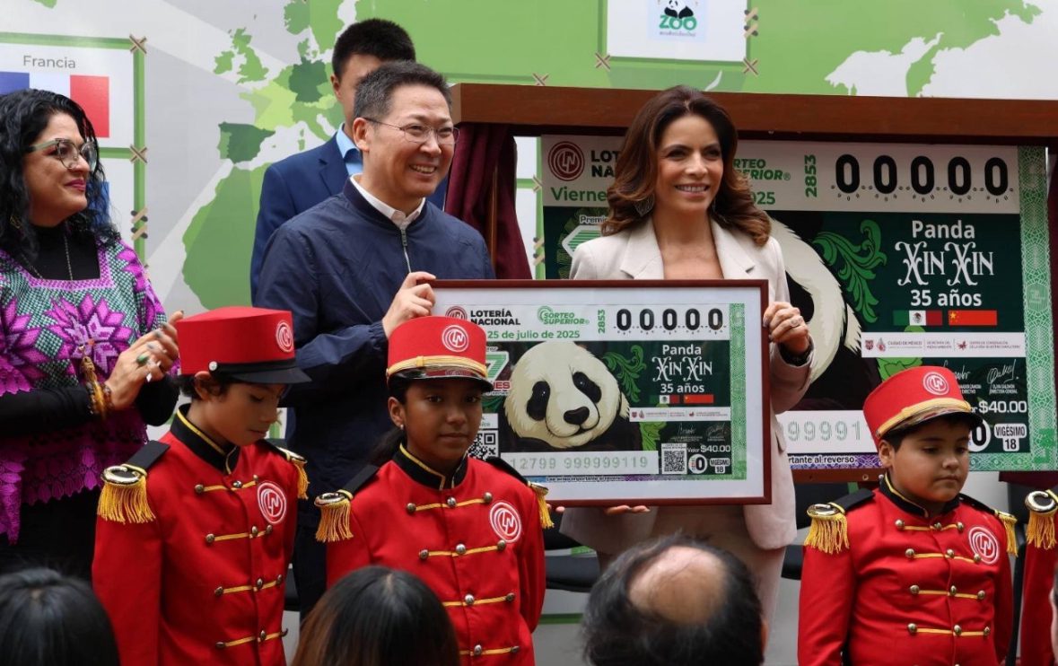 La Jefa de Gobierno de la Ciudad de México, Clara Brugada Molina, y la directora general de Lotería Nacional, Olivia Salomón, develaron el billete del Sorteo Superior No. 2853, que destaca los 35 años de Xin Xin, el último panda gigante en Latinoamérica, ícono de lazos con China y emblema del esfuerzo internacional por preservar la biodiversidad, cuya longevidad da muestra del compromiso y cuidado del equipo del Zoológico de Chapultepec desde su nacimiento en 1989.