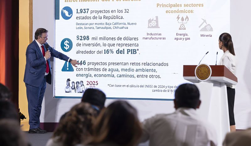 Puntualizó que las inversiones por 298 mil mdd son parte del Plan México, el cual recordó, busca aumentar la producción nacional; el orgullo de lo Hecho en México; fomentar la inversión nacional para reducir importaciones; ampliar las capacidades de infraestructura, de generación de energías limpias y de energía eléctrica, así como fortalecer la soberanía alimentaria y energética.