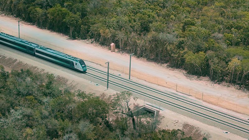 Este sábado constató en Quintana Roo avances de los tramos 4 y 5 del Tren Maya acompañado de la secretaria de Medio Ambiente y Recursos Naturales, María Luisa Albores González; los secretarios de la Defensa Nacional, Luis Cresencio Sandoval González; de Infraestructura, Comunicaciones y Transportes, Jorge Nuño Lara; de la Función Pública, Roberto Salcedo Aquino y de Desarrollo Agrario, Territorial y Urbano, Román Meyer Falcón; los subsecretarios de la Defensa Nacional, Gabriel García Rincón y de Egresos de la Secretaría de Hacienda y Crédito Público, Juan Pablo de Botton Falcón; el director general de la Empresa de Participación Estatal Mayoritaria Tren Maya S. A. de C.V., Óscar David Lozano Águila; el coordinador general de Fiscalización de la Secretaría de la Función Pública, Eduardo Gurza Curiel; el director general del Grupo Aeroportuario, Ferroviario, de Servicios Auxiliares y Conexos, Olmeca-Maya-Mexica, José Gerardo Vega Rivera; el director general de Ingenieros de la Secretaría de la Defensa Nacional, Salvador Fernando Cervantes Loza; el comandante del Agrupamiento de Ingenieros Felipe Ángeles, Ricardo Vallejo Suárez y el supervisor honorario del Tren Maya, Daniel Chávez Morán, así como integrantes de la Secretaría de la Defensa Nacional y representantes de las empresas ICA, Grupo Indi, Alstom y Mota-Engil.