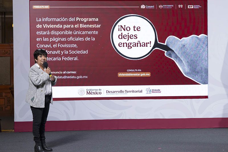 La secretaria de Desarrollo Agrario, Territorial y Urbano, Edna Elena Vega Rangel, detalló que a la fecha ya se tiene una reserva para 900 mil viviendas en predios bien ubicado y que cuentan con todos los servicios, con lo que este año la meta es la construcción de 400 mil viviendas: 302 mil del Infonavit, 86 mil de la Conavi y 9 mil FOVISSSTE, lo que representa un avance del 70 por ciento de la meta anual. Informó que el pasado 3 septiembre, se firmó un convenio con todas las instituciones del Gobierno de México para reforzar trámites, procesos y obras que son necesarias para la construcción de viviendas.