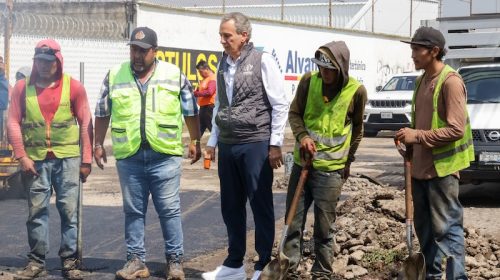 • Pepe Chedraui supervisa trabajos de bacheo en San Pablo Xochimehuacan