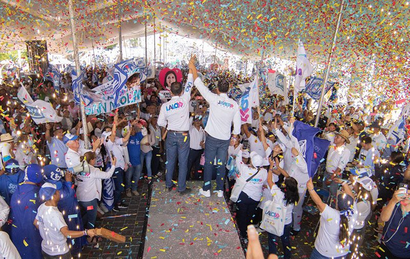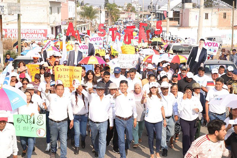 También afirmó que ya huele a triunfo pues las encuestas recientes lo colocan a él y a Roxana Luna, candidata a la Presidencia Municipal de San Pedro Cholula 10 puntos arriba en esta localidad, por lo que invitó a las y los asistentes a votar sin falta el próximo 2 de junio.