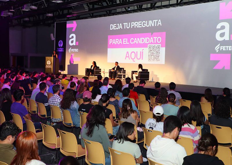El Centro de Convenciones del Tecnológico de Monterrey Campus Puebla fue el escenario para que Eduardo Rivera interactuara con las y los estudiantes, platicando sobre sus propuestas, las principales que llamaron la atención de la comunidad universitaria fueron la ‘Tarjeta Salud Contigo’ y ‘Contigo Mujer’.
