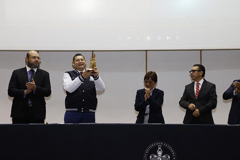 El gobernador electo fue honrado con la Presea ”Minerva a la Excelencia” de la Facultad de Administración Pública de la BUAP*