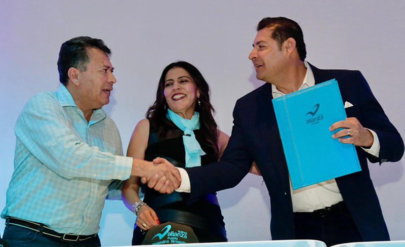 Ante militantes del Partido Nueva Alianza, el coordinador estatal de los comités de defensa de la cuarta transformación Alejandro Armenta fue reconocido como su candidato a la gubernatura, y recibió la constancia que lo acredita y el compromiso del acompañamiento del partido de la educación para posicionar a Puebla como un gran clúster educativo.