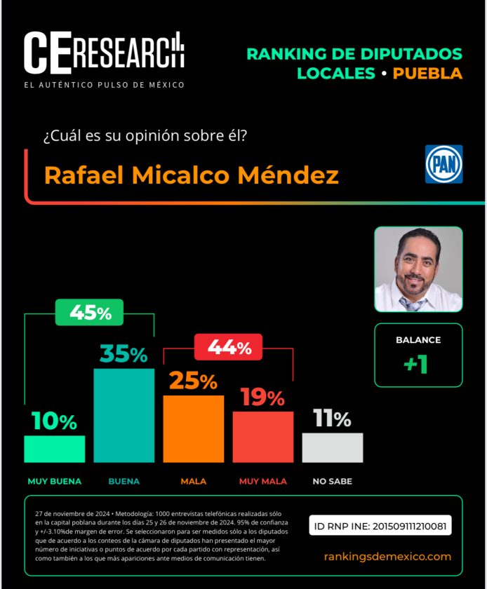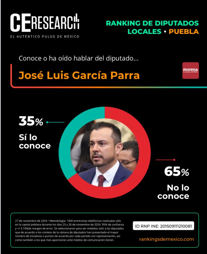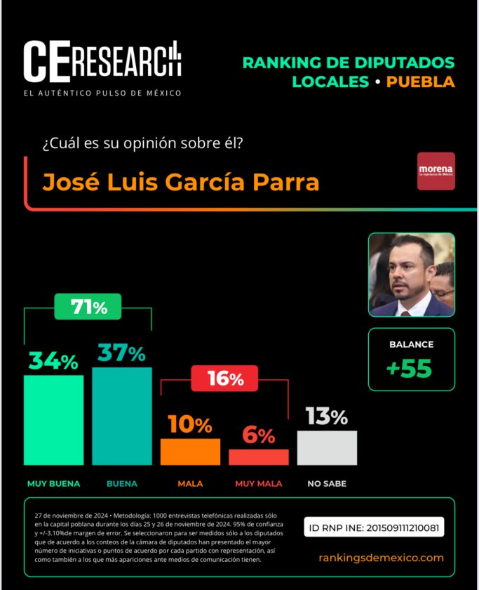 Con un balance positivo del 71%, el diputado morenista José Luis García Parra es el mejor evaluado por la ciudadanía en la actual legislatura.