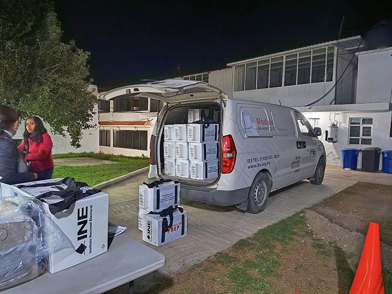 Estas entregas, que iniciaron desde las primeras horas de este 27 de mayo y concluyen el 31 de mayo, contienen las boletas de cada elección, las actas, el líquido indeleble, la Lista Nominal de Electores y demás documentación electoral.
