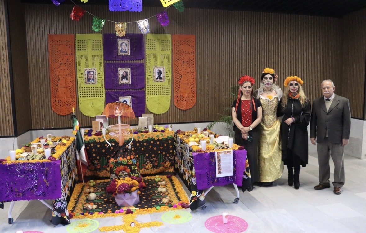 Durante su mensaje en las actividades conmemorativas, las titulares del Voluntariado y de la Unidad para la Igualdad de Género, Minerva García Chávez y Daniela Mier Bañuelos, respectivamente, destacaron el trabajo en equipo para llevar a cabo esta dinámica, así como el entusiasmo para honrar tradiciones.