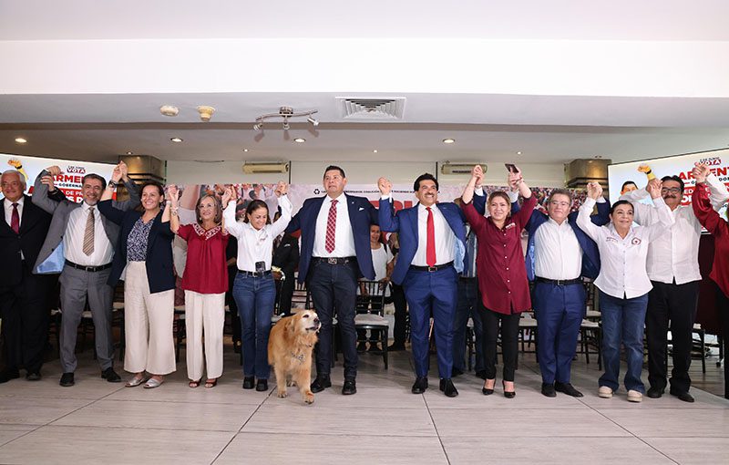 Alejandro Armenta estuvo acompañado en la rueda de prensa de: Abraham Quiroz primer candidato de Morena, José Ramón Enriquez Herrera Senador y coordinador de la zona metropolitana, Araceli Caselín Regidora de Morena, Miguel ángel de la Rosa Esparza coordinador de MIPYMES, Virginia González Melgarejo Coordinadora de Mujeres, Agustín Guerrero Secretario General de Morena, Olga Lucía Romero Garci-Crespo Presidenta Estatal de Morena, Carmen García palma Regidora de Morena, Edurne Ochoa y Rodolfo Huerta voceros de campaña, Luis Antonio Godina Subcoordinador de Diálogos por la Transformación, Fernando Litardi y Isauro Alí artistas plásticos, Alejandro Montiel Bonilla, Gestor, Aurelio Leonor, pintor, Celina Peña Coordinadora de Diálogos por la Transformación, Armando Etcheverry, asesor, Jorge Armando Castañeda Director de la compañía de danza regional de Puebla, Gabriela Murat, Coordinadora de Enlace con las Organizaciones de la sociedad civil, Pablo Salazar, coordinadora de estructuras morenistas, María José Farfán y Lucía de la Rosa.