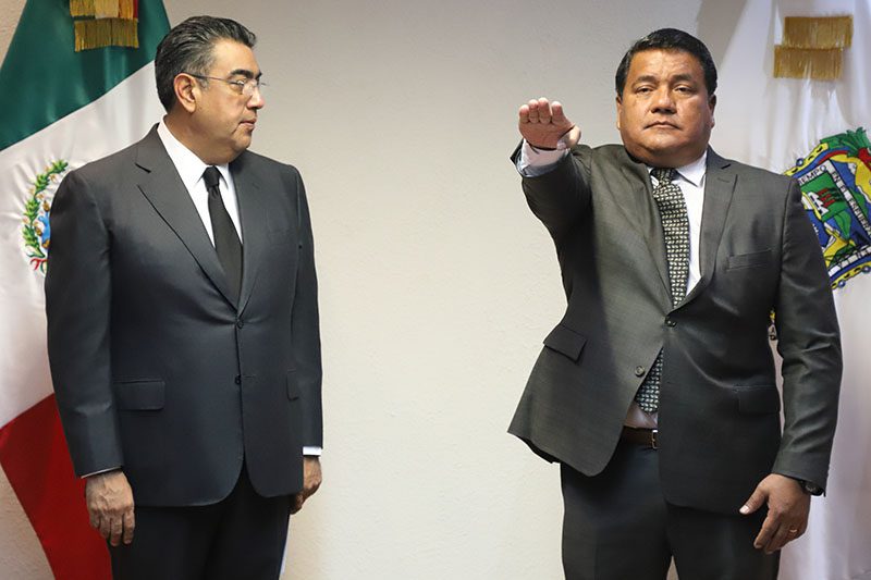 El gobernador Sergio Salomón Céspedes Peregrina tomó protesta a Julio Miguel Huerta Gómez como secretario de Gobernación, quien previamente ocupó la Dirección General de Gobierno.