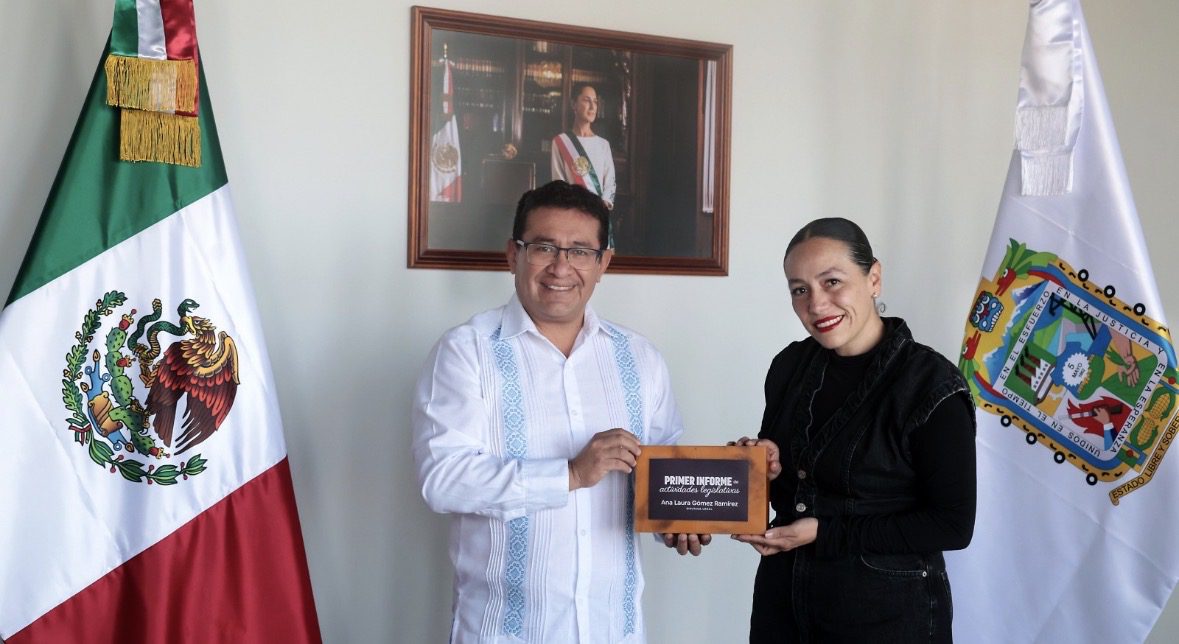 Además de compartir en redes sociales las principales acciones realizadas en el primer año legislativo, la diputada Ana Laura Gómez entregó su informe al presidente de la Junta de Gobierno y Coordinación Política, Pavel Gaspar Ramírez.