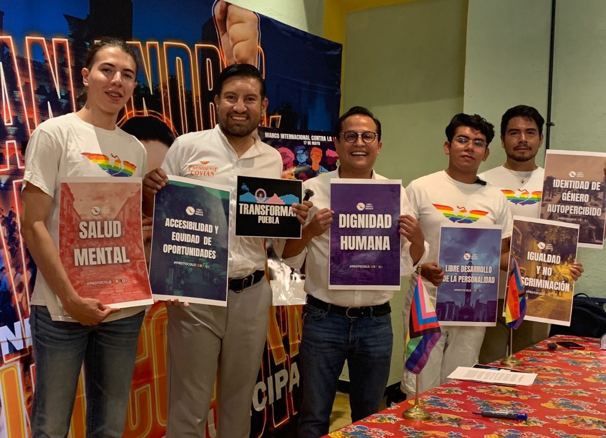 El candidato a la alcaldía por San Andrés Cholula por Movimiento Ciudadano (MC), Eduardo Covián Carrizales, acompañado por el Coordinador Federal de Proyectos Prioritarios, David Olivo Arrieta firmaron una Carta Compromiso con el Colectivo “Transformar Puebla” en conmemoración al “Día Internacional contra la Homofobia, Transfobia, y Bifobia” siendo representado por Mauricio De Alba y Pablo Barroso.