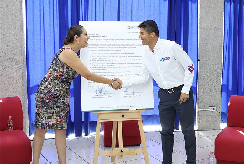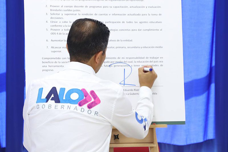 Adicional a la presentación de sus propuestas en materia educativa firmó el compromiso Por una Educación con Rumbo el cual señala que trabajará para mejorar la calidad de la educación en Puebla, enfocando los esfuerzos para abatir ciertos rezagos y avanzar hacia un nivel educativo que permita a los niños y las niñas desarrollar plenamente sus capacidades y proveer al cuerpo docente de programas para su capacitación, actualización y evaluación, así como sueldos justos, entre otras acciones prioritarias.