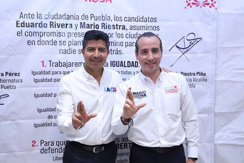 Ante la ciudadanía de Puebla, los candidatos de la Coalición ‘Mejor Rumbo para Puebla’ Lalo Rivera -a la Gubernatura- y Mario Riestra -a la Presidencia Municipal de la capital- firmaron un compromiso con Unid@s en donde se plantea un camino para que nadie se quede atrás, para trabajar por la Igualdad y la defensa de la libertad.