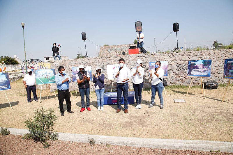 A petición de los vecinos, recorrió el Juego de Pelota de la Resurrección para constatar la falta de mantenimiento, por lo que se comprometió a rehabilitarlo durante los primeros cuatro meses e invitó a las y los poblanos a inscribir sus peticiones para mejora de calles, parques o alumbrado en su página oficial eduardoriveraperez.mx.