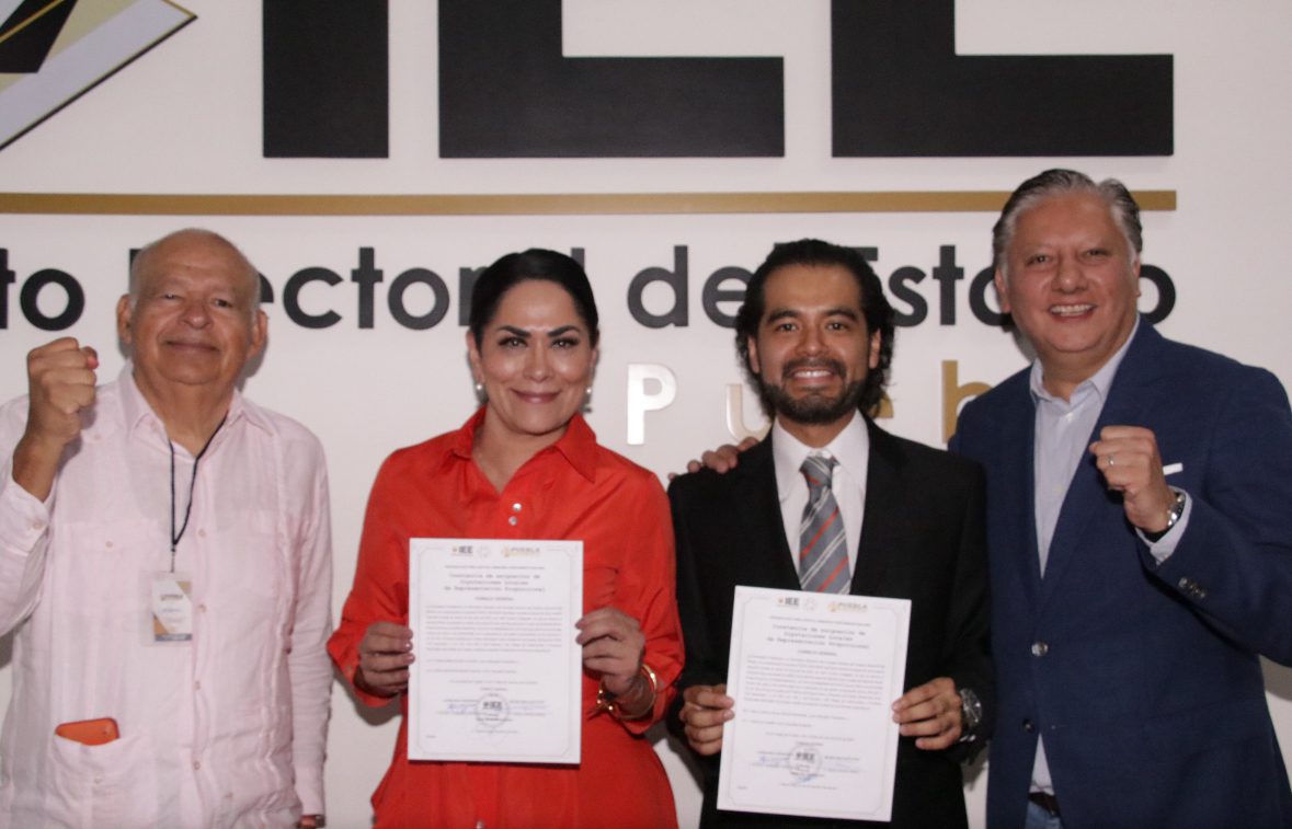 Fedrha Suriano y Marco Antonio de los Santos, se hicieron presentes en el Instituto Electoral del Estado para firmar las constancias de asignación de disputaciones locales de representación proporcional por Movimiento Ciudadano, entregadas por la presidenta del instituto, Blanca Yassahara Cruz.