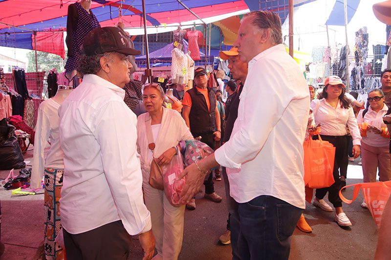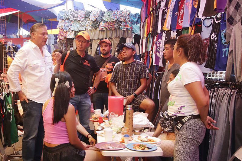 El candidato al gobierno del estado por MC, Fernando Morales, realizó una caminata en el tianguis «Los Lavaderos» para comentar sus propuestas de campaña y escuchar las necesidades de los locatarios.