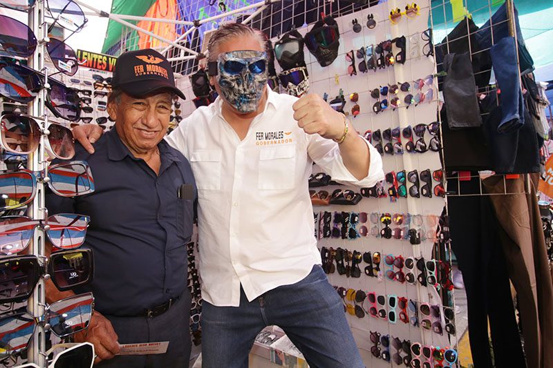 Fer Morales reiteró su compromiso con los mercados y tianguis del estado, afirmando que en su gobierno todas y todos los comerciantes tendrán un lugar limpio, con instalaciones adecuadas para poder vender sus productos y recordó que los programas sociales no pueden ser retirados de las y los ciudadanos.