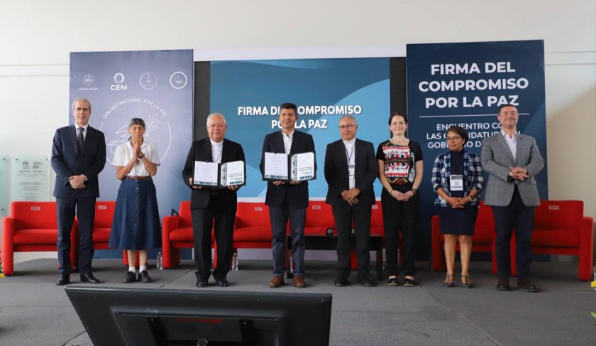 Con el objetivo de establecer una relación entre gobierno y sociedad civil, Lalo Rivera, firmó el Compromiso por la Paz, una iniciativa de tres instituciones de la Iglesia -La Conferencia del Episcopado Mexicano, CIRM y de la Compañía de Jesús- de acuerdo a lo señalado por el Arzobispo Víctor Sánchez Espinosa.