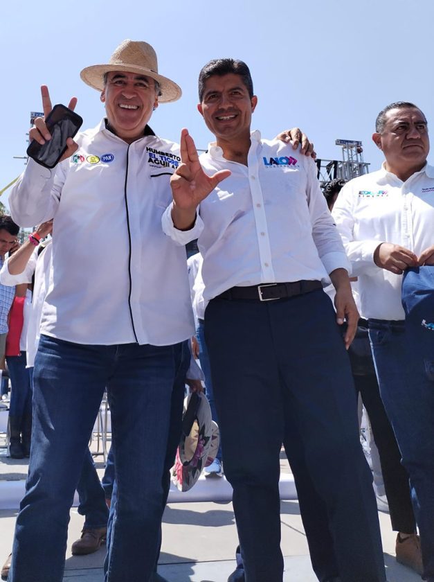 El candidato a diputado federal por el Distrito 10 Humberto Aguilar Coronado «El Tigre» acudió al cierre de campaña del candidato a gobernador Lalo Rivera y del candidato a presidente municipal de Puebla capital Mario Riestra.