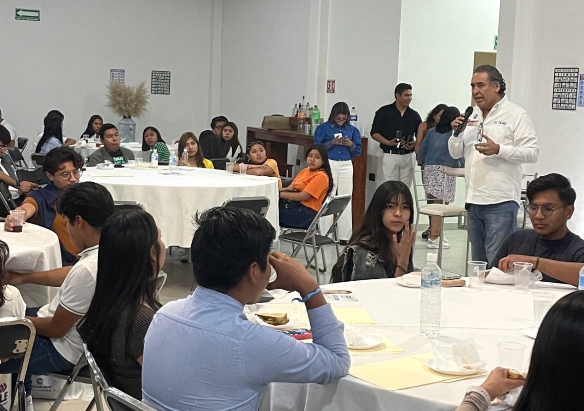 El candidato a diputado federal por el Distrito 10, Humberto Aguilar Coronado “El Tigre”, participó en un foro dirigido a jóvenes en el municipio de San Andrés Cholula, donde los motivó a prepararse para trabajar por México.